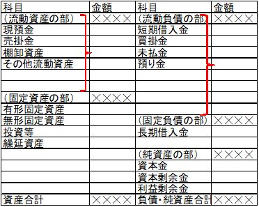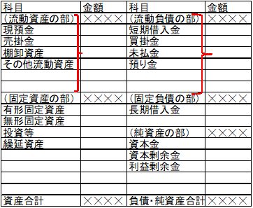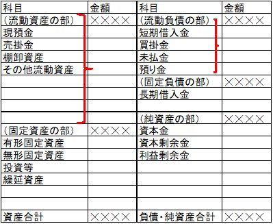 貸借対照表には、おおよそ以下の分類で数字を配列しています。