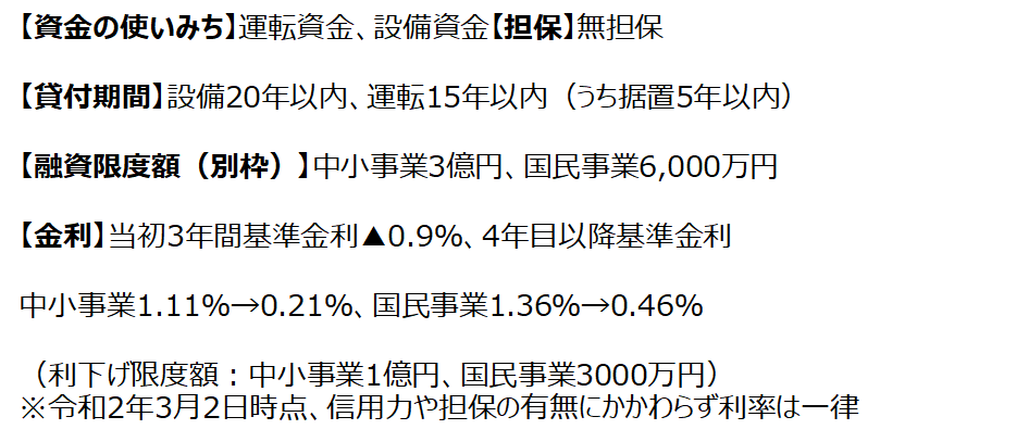 気を取り直して使いやすいといわれる「日本政策金融公庫」のコロナ特別融資の詳細を説明しましょう。